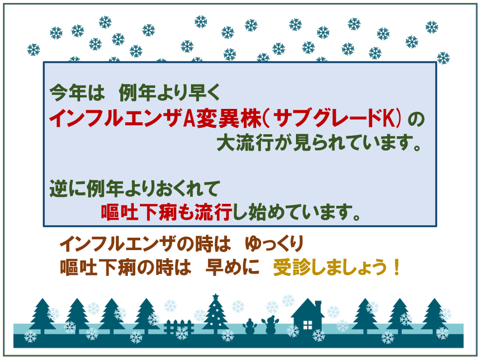 インフルエンザワクチン予防接種は12月いっぱいで終了します。